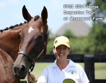 Westfalen NA / RPSI @ Moserwood, 2014 - Moserwood hosted the Rheinland Pfalz-Saar International inspections, August 2014. Site champion mare was Kim Smith’s powerful 17 h. bay thoroughbred mare "Alberta’s Book xx" (Albert the Great x Oka No Book - Mari's Book). She earned premium status with her solid conformation, sporty type and elastic, uphill movement, and qualified for Praedikat Sport with her impressive race record over a long career and classic distances.